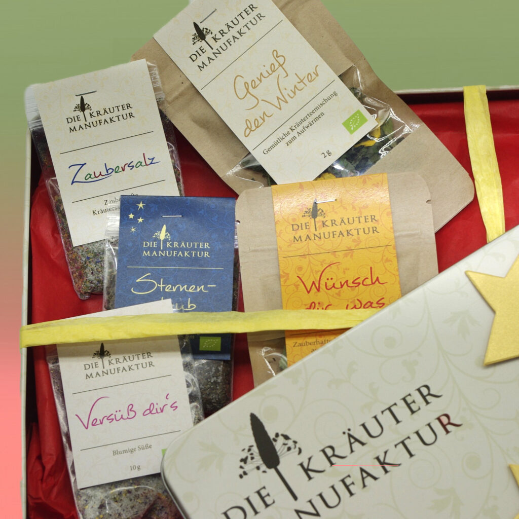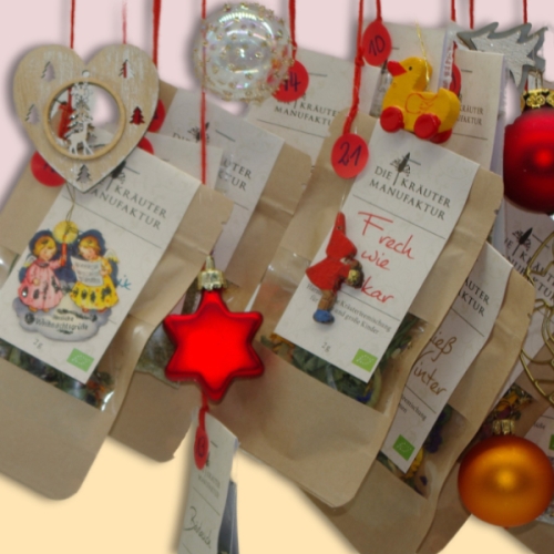 Aus unseren Kräutertee- und Kräutersalz Probierpäckchen lässt sich ein „geschmackvoller“ Adventskalender zusammenstellen.