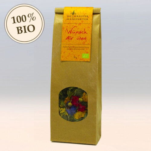 Zutaten:Apfelminze*, Anis Ysop*, Holunder*, Kornblumen*, Basilikum*, Königskerzen*, Rosen*.